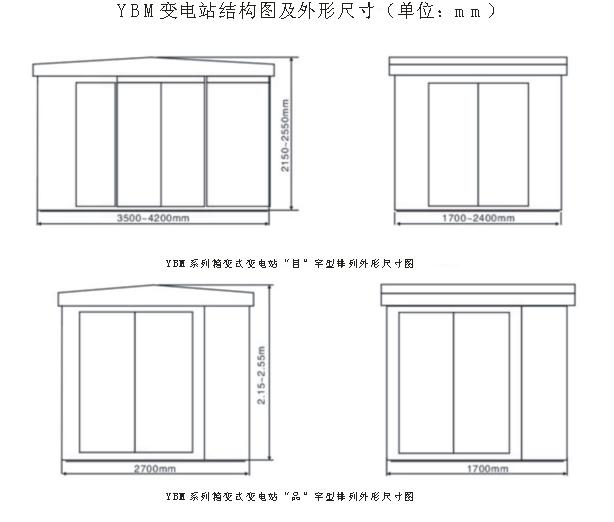 毫米,高度不超過2700毫米。箱變頂部采用“坡頂”形式,“坡頂”底沿高度為2000毫米。箱變四面均有可開啟的門。