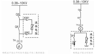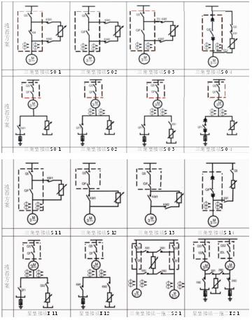 根據(jù)電機定子不同接線方式,起動裝置主回路連線示意圖