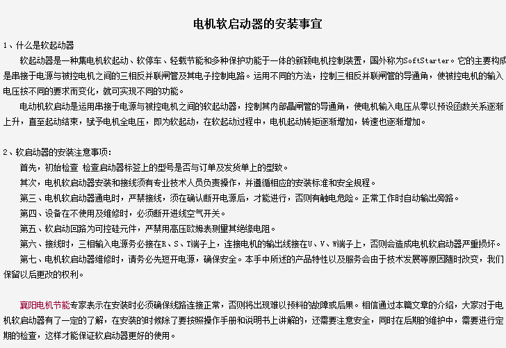 軟起動器的安裝事宜
